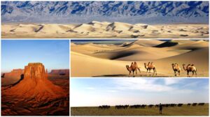 Many people picture the Mongolian Gobi as a sandy flat area, sand dunes, barren dried mud soil or… , but after they traveled Mongolia, they completely deny it and define Mongolian Gobi it supports life and is an amazingly surprising area, every day. Some parts of the Mongolian Gobi are daunting rocky mountains covered with plants. The mountainous areas have plenty of streams, springs and wild animals while other parts have views of marvelous blue mountains combined with high and long continuing sand dunes, lush green-shored streams and endless steppes edge with the horizon. Hundreds of sheep and goat herds, horses, cattle and the world rare Bactrian camels will be seen on the prairies or among mirages in middle of nowhere is another picture of the Mongolian Gobi. You will stay at Ger camps allow you enjoy 360° views of the steppes most of the time. Either the nights of the Gobi are amazingly quiet and beautiful with countless bright stars. You also see amazing sunrises and sunsets in the Gobi. Except for the natural beauty, there are plenty of activities such as hiking in the mountains, climbing sand dunes, riding two-humped camels, visiting nomads and ancient monasteries. Travel Mongolian Gobi with us and discover more of its incredible beauties.